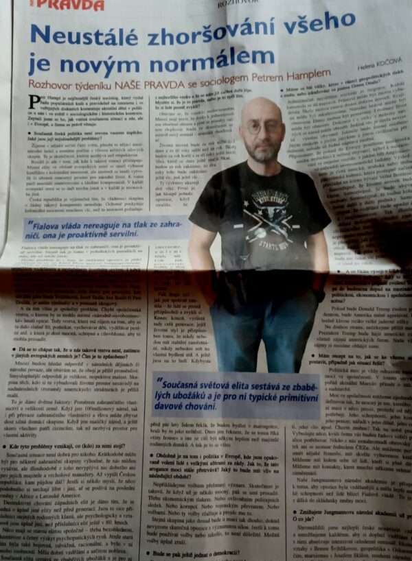 Text rozhovoru pro Naše pravda, což jsou noviny KSČM, je zde.  Poskytl jsem ten rozhovor rád, protože obě redaktorky profesionální a milé. Nicméně zde taky příležitost vysvětlit, co mám proti komunistům. Ne něco z minulosti, to je pro historiky. Mohu odsuzovat jejich činy z roku 1952 stejně jako odsuzuji katolické činy z roku 1632 (a protestantské z roku 1553, a ateistické z roku 1791) nebo skutky liberálů z roku 1847. Otázka zní, co od koho hrozí v současnosti. A je zjevné, že české podnikání je likvidováno spíš globálním kapitálem než místními komunistickými stranami. A pokud někdo stíhá lidi za nesouhlas s vládou, tak to jsou liberálové a nikoliv komunisté.